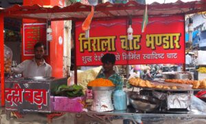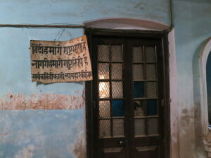 「ヒンディー語は国の言語、ナーガリー文字は国の文字。あらゆるところでヒンディー語を使おう」と書かれた張り紙。多言語社会インドならではの言語啓発。