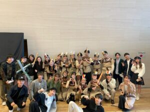 ポルトガル語専攻の学生は明るく、活発な人が多いように思われます。1年生は揃いのTシャツでまちかね祭に模擬店を出店したり、2年生は箕面キャンパスの語劇祭でポルトガル語劇を演じたりとチームワークもよいです。また毎年、大勢の学生がポルトガルやブラジルに留学します。様々なことにチャレンジするのが本専攻の学生の特色といえるでしょう。