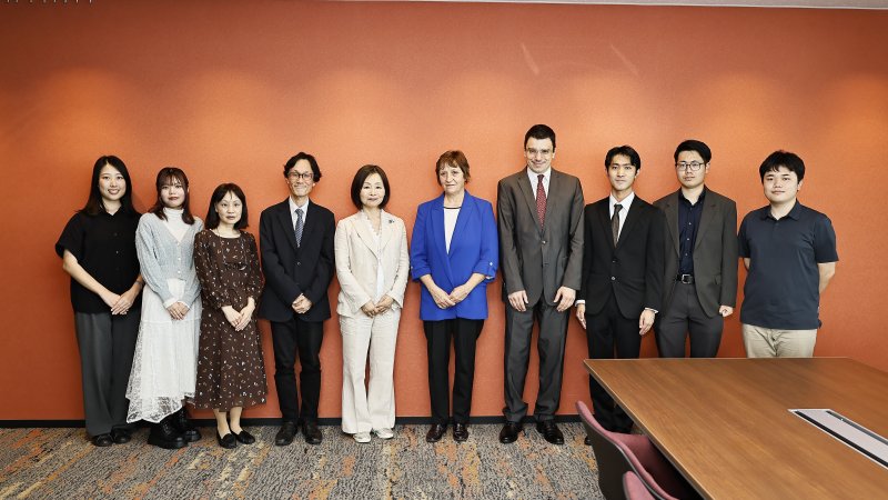 令和7(2025)年10月7日(火)、ブルガリア共和国科学アカデミー総裁エヴェリナ・スラフチェヴァ氏が筒井佐代外国学部長と清水政明外国学専攻長を表敬訪問されました。本学からは、ロシア語専攻の藤原克美教授、ブルガリア語担当非常勤講師のイヴォ・ブラジミロブ氏と本学外国語学部でブルガリア語を学ぶ学生5名が同席しました。